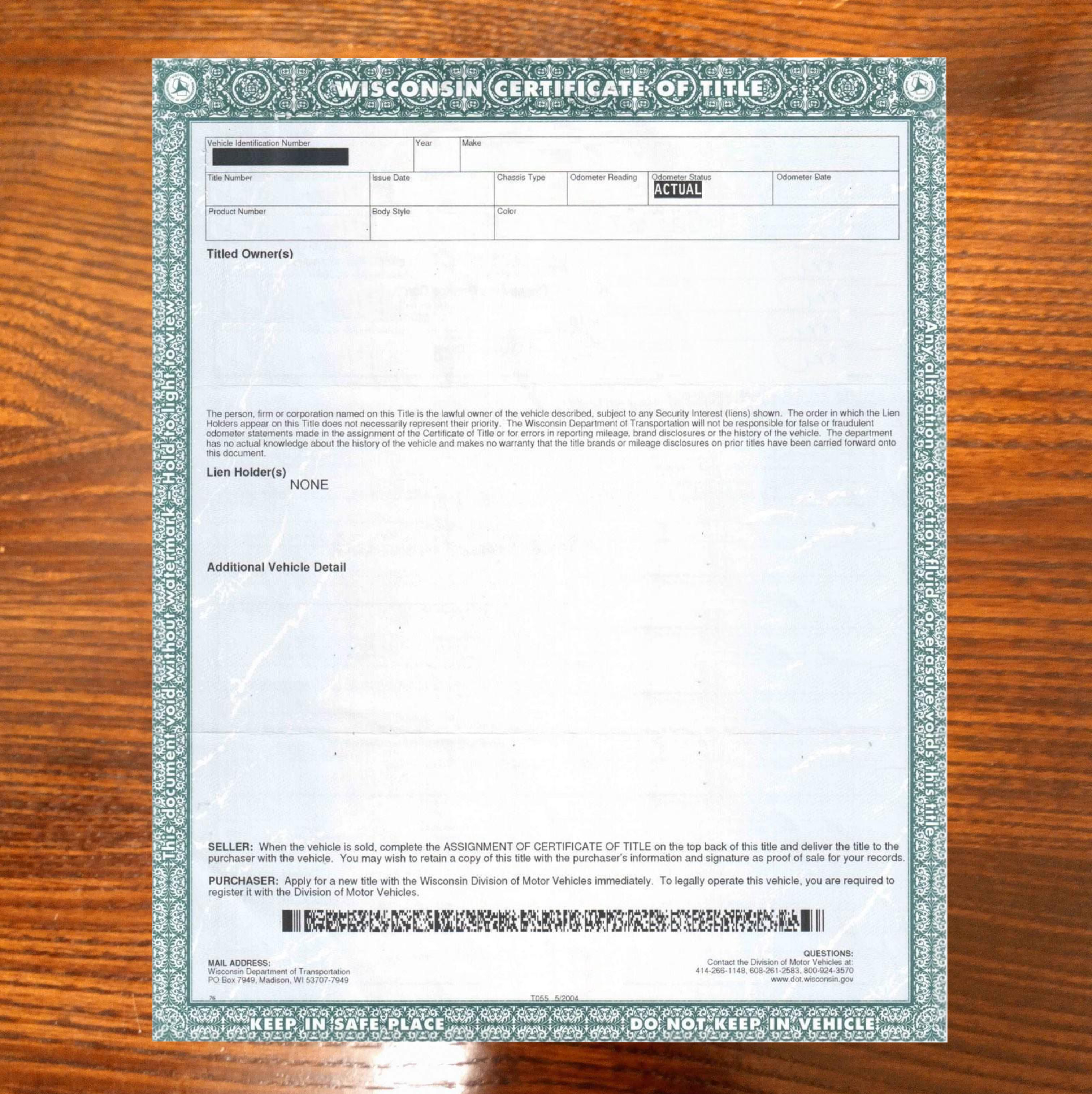 Vehicle Identication Number: